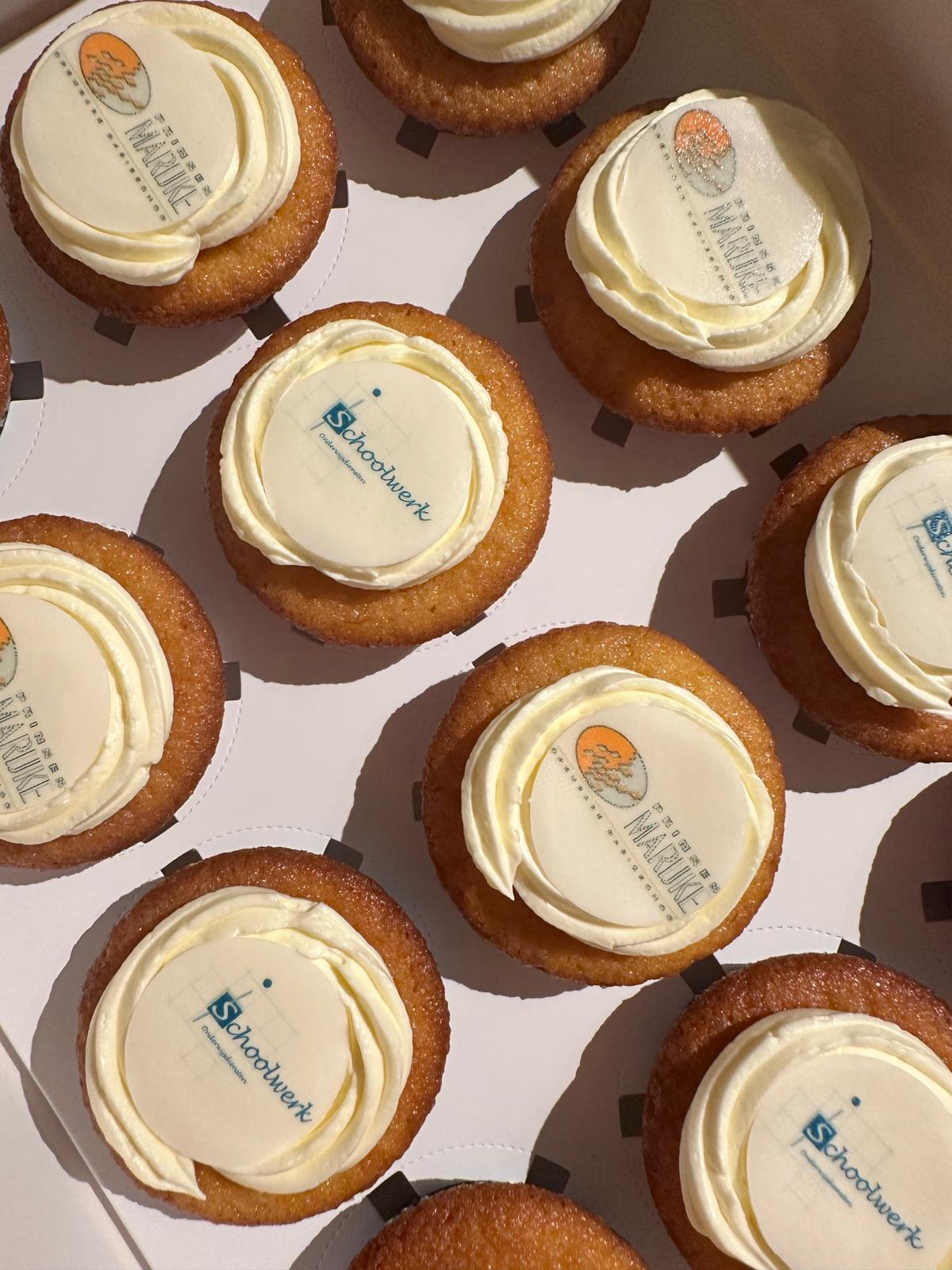Breng jouw bedrijf op een unieke manier op de markt met een cupcake met jouw logo.